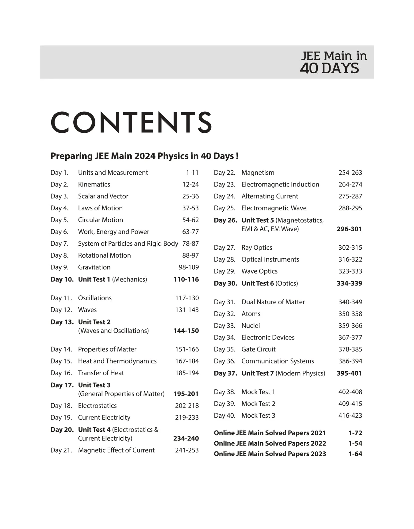 - A latest revised edition of “JEE MAIN IN 40 DAYS-PHYSICS”